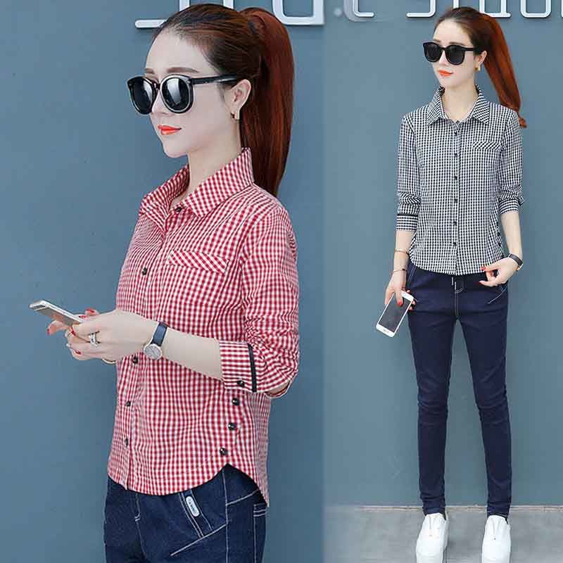 Baju Kemeja Kotak Kotak Baru Lengan Panjang Pendek Kemeja Wanita Atas Pendek Baju Perangai Yang Seragam